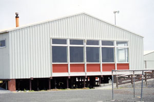 荒涼とした平地に、ぽつんと空港の位置を示すかのような吹き流しと、小さな小屋が見えてくると道は急に舗装路に変わります。