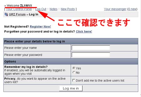 ここで改めてQRZに登録されている(であろう)ユーザー名と、パスワードを使って再ログインを行って見て下さい。