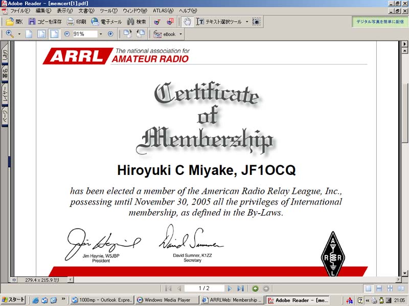 ARRL Membership Certificate