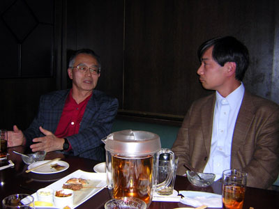 2007年 2月 2日に、東京某所でなかなか濃いいメンバーで一杯やりました。 JF1JCF百武OM、JA8VE斎藤OM、JJ1TBB河崎OM(ex BN0F)、JK1QLR長瀬OMと私の5名です。 どんなつながりかは、なかなか想像出来ないメンバーかもしれませんが、ま、こういうつながりもあるんですね(笑) いつもながら制限時間オーバーの楽しい集まりでした。 忙しい毎日を送られているのに、わざわざお越しいただいた長瀬OMと河崎OMに感謝!感謝! JJ1TBB河崎OM(左)とJF1OCQ三宅 JA8VE斎藤OMとJK1QLR長瀬OM JK1QLR長瀬OMとJJ1TBB河崎OM | Back |