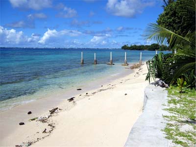 前の写真の砂浜側 敷地の境界に好都合なコンクリートの杭が見える。