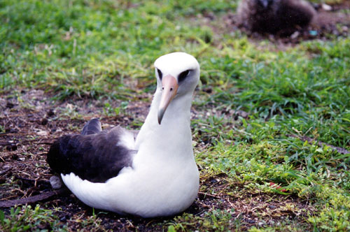 コアホウドリの成鳥。陸上での動作は極めて緩慢で歩くのが苦手です。 羽は非常に柔らかそうで、上質のダウンとして乱獲された理由が良く分かります。