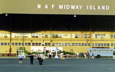 ミッドウェイに到着直後にハンガー(格納庫)を撮影しました。 島の中枢はすべてこの建物の中にあります。 | Forward | Back | Next |