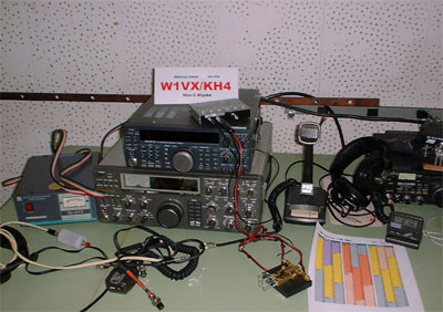 私の運用スペース。写真上部のTS-690SATは私が持参したリグで、下はTS-930でミッドウェイに元々あるもの 但し、若干不具合があるので私は一度も使用しなかった。 | Forward | Back | Next |