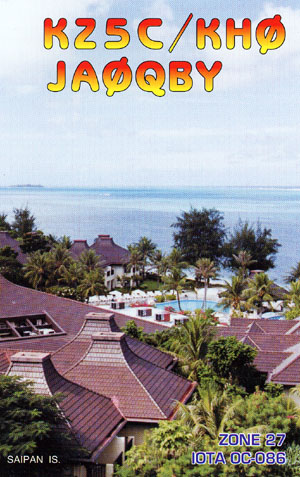 やまびこアマチュア無線クラブ(JO1YYD)の有志メンバー3名が、クラブ創設以来メンバー同士では初めての、びっくりどっきり海外運用(サイパン島)を行いました。 西原氏(JA0QBY/KZ5C)、小鮒氏(JR1IBD)、三宅(JF1OCQ/W1VX)の3名です。 バンザイクリフにて(JA0QBY,JR1IBD,JF1OCQ) 小鮒氏のQSLカード、デジカメの画像をJPEGで入稿したそうです 西原氏のQSLカード 遠くにマリンスポーツのメッカ、マニャガハ島を見る 早朝の海 リゾートの外観 リゾートの中庭 バンザイクリフから日本方面を臨む KH0/JR1IBD パイルをさばく! KH0/JR1IBD 奮闘中! KZ5C/KH0 余裕のKZ5C! JAとEuに向いた21MHzのバンザイアンテナ 小鮒さん!リグ貸してね! はて?この後ろ姿は?? | Back |