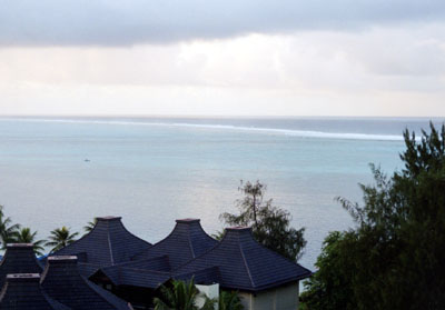 西原氏のQSLカード 遠くにマリンスポーツのメッカ、マニャガハ島を見る