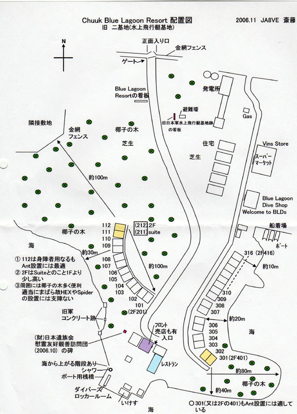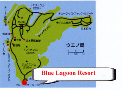 Blue Lagoon Resortは島の南端(昔の海軍水上飛行艇滑走路跡)にある)