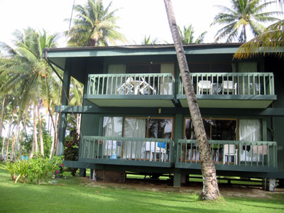 マングローグ林に囲まれた平屋建てコテージ。無線には不向き。レストランは趣き有り。