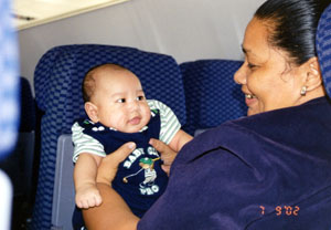 狭い機内で、生後3ヶ月の七郎君を抱いて、周りに盛んに気を遣いながらの旅は、母子共に大変な事だろうと推察しました。