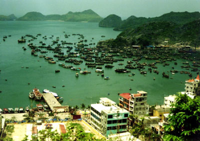 湾には沢山の水上レストラン、水上生活者の船が見える。