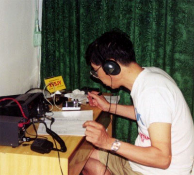 4F(最上階)2室に泊まり屋上に空中線を4本張り運用しました。