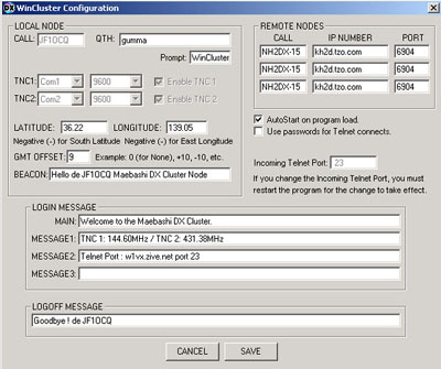 NODEは、現在のところNH2DX-15で固定ですが、このノードは上位ネットワーク(例えばDXsummit)との相性も良く、WCのネットワークからポストされたDXスポットも、非常に短い時間でDXsummitに表れます。私たちとしてはこのままでまったく問題はありません。