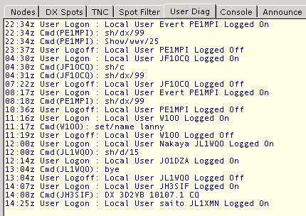 ところで、WCでは従来のDXクラスターノードに備わっていた、ノード間のブリテンやメールの転送などはサポートしておりません。