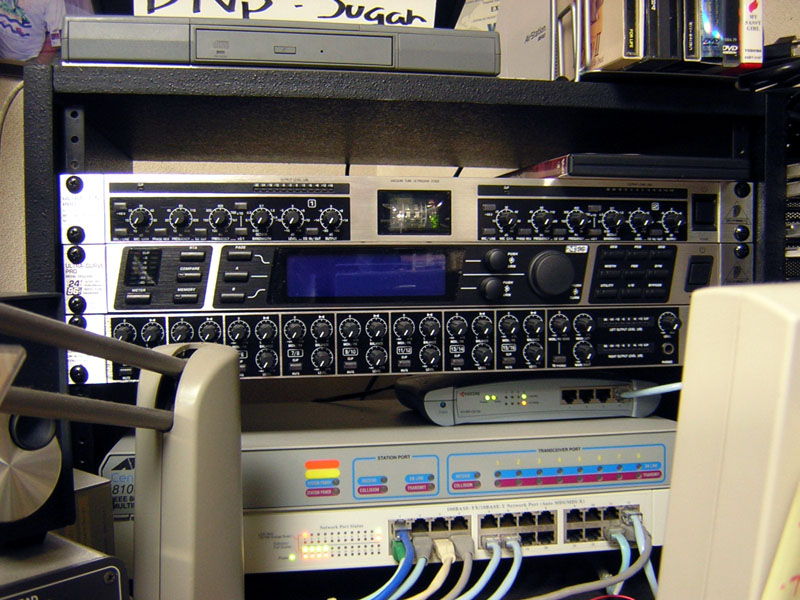 19インチラックに収めたDSPユニット他、上記のマイクは両方ともここに収納されている。*クリックで拡大